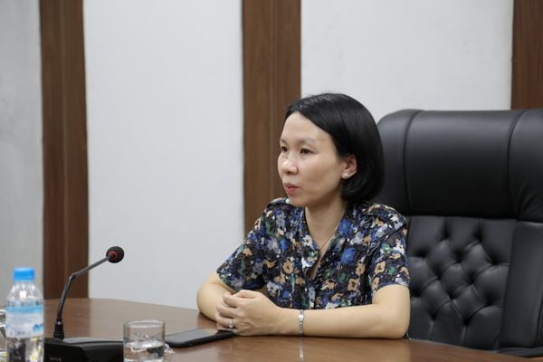 Bà Trương Thị Kim Ngân - Phó Tổng Giám đốc Tập đoàn 568 chia sẻ về sự đồng hành của doanh nghiệp với các em sinh viên.